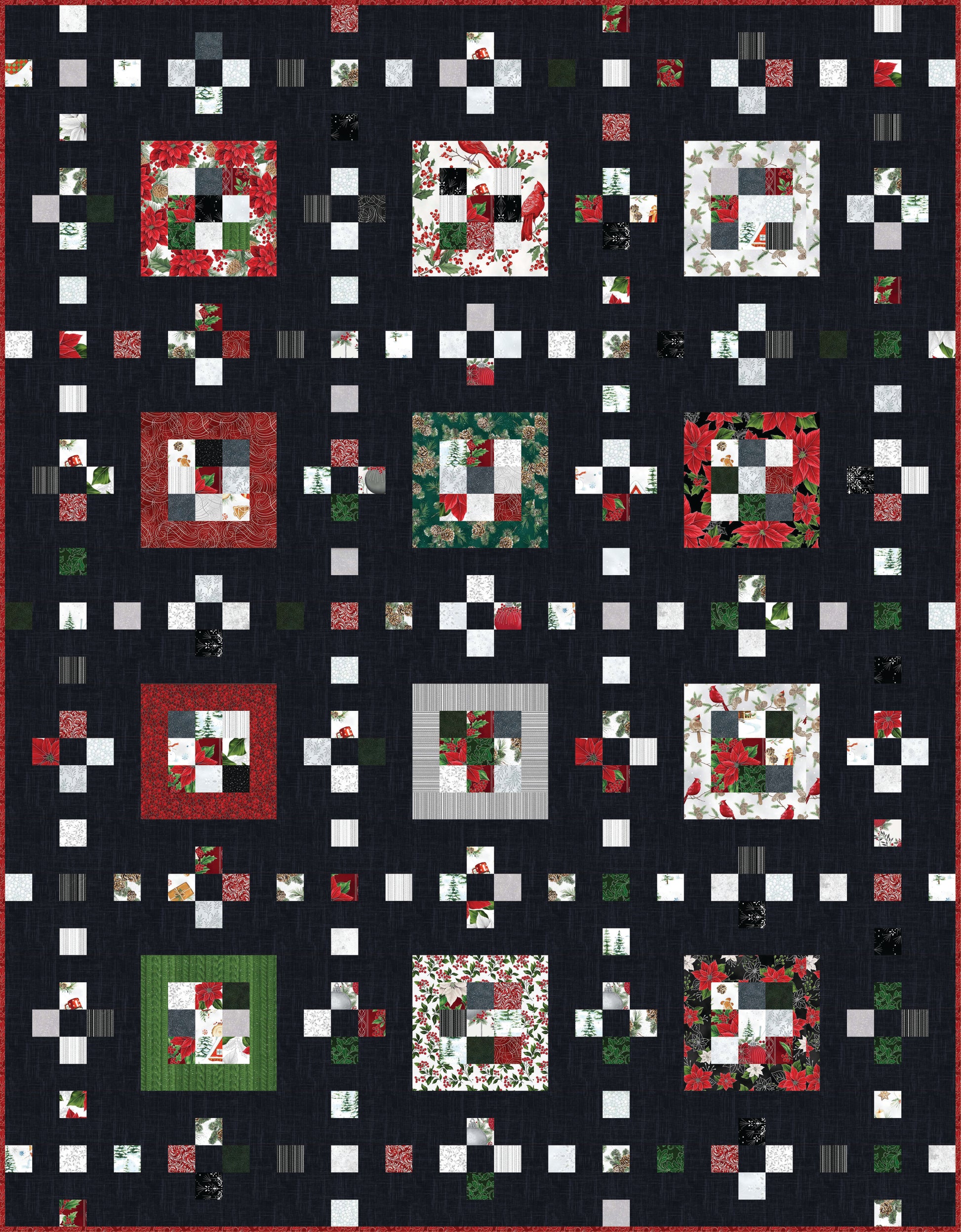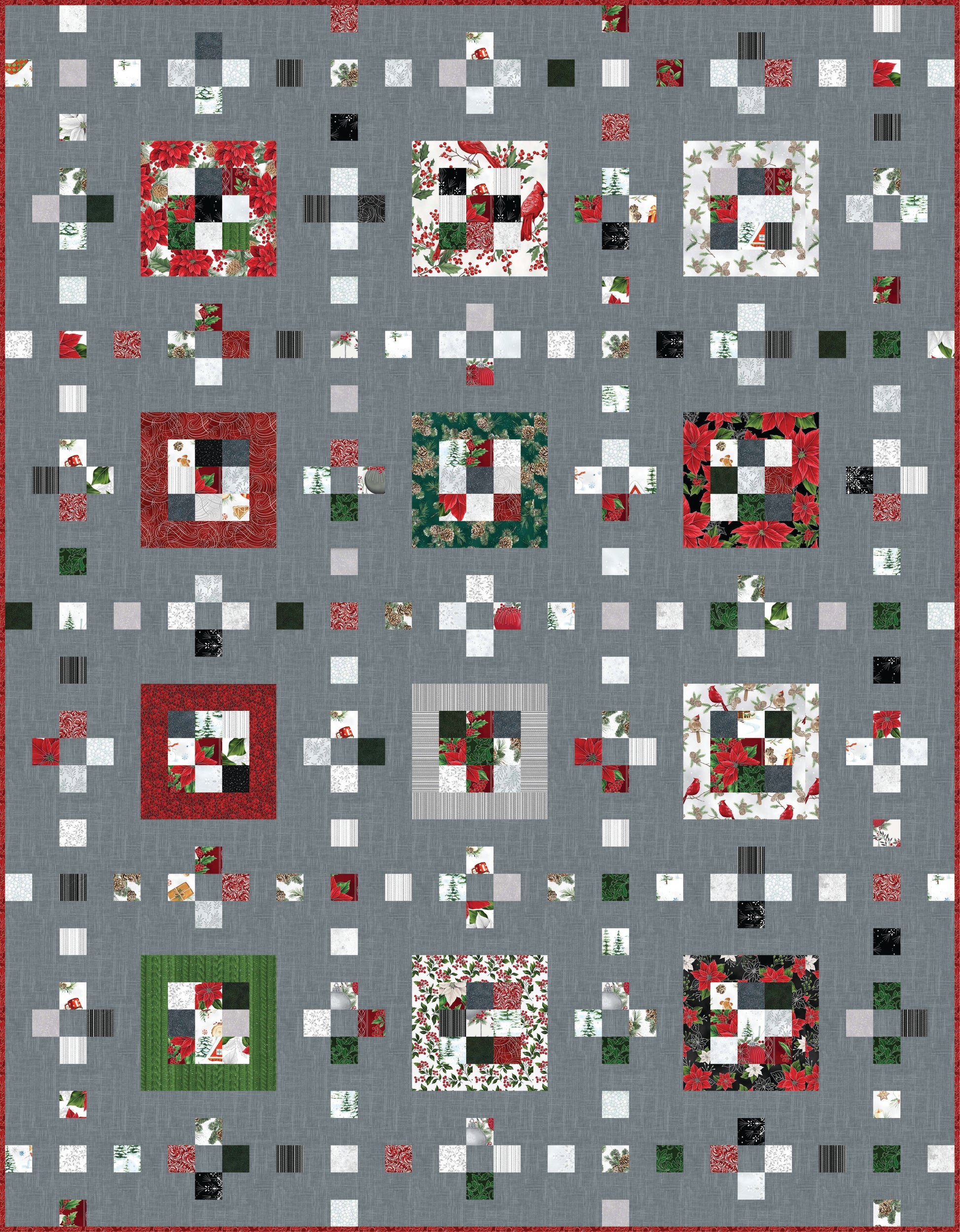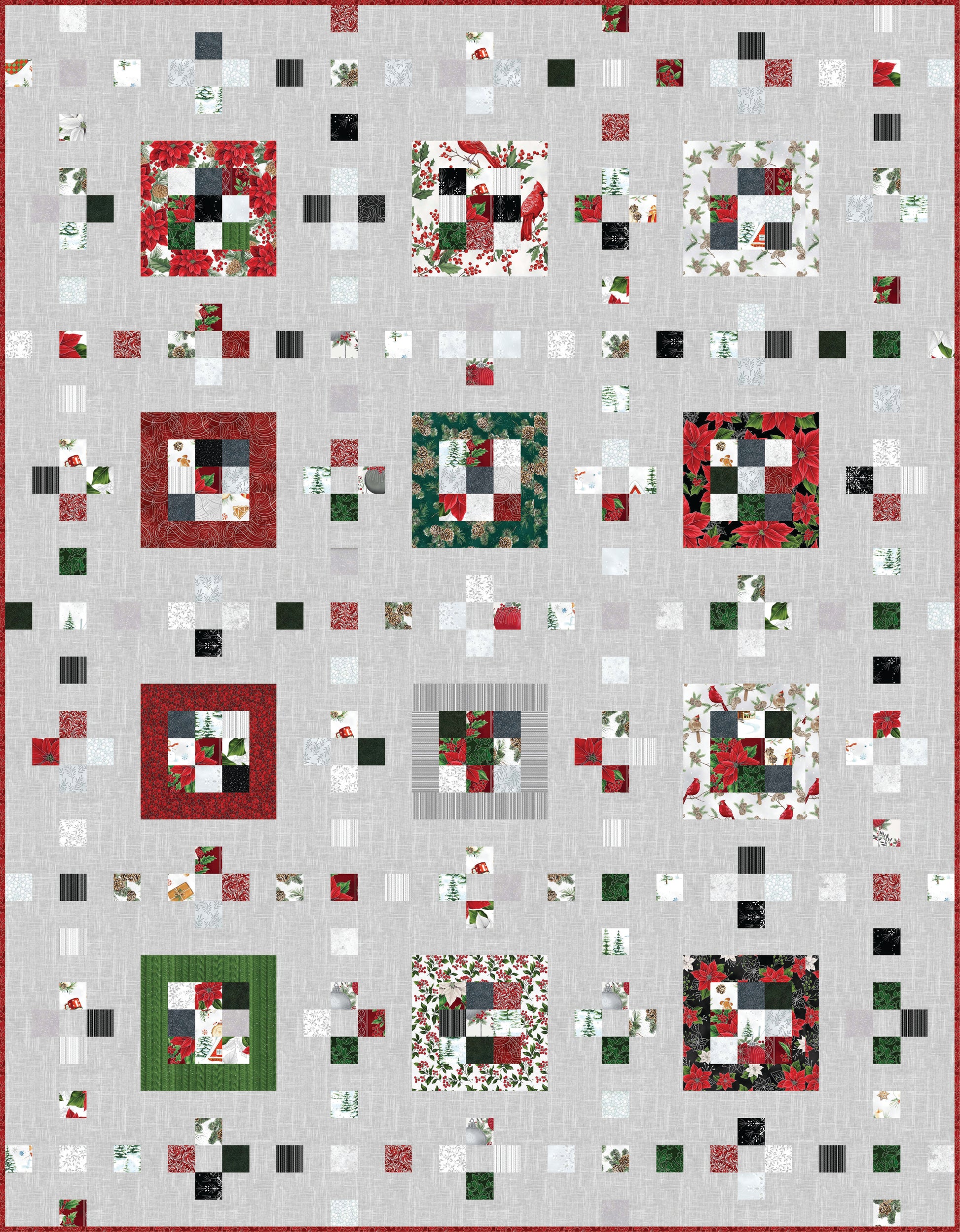 Choose a Jingle Pop or Jelly Roll, or cut your own set of 2 ½" strips and make them pop with this easy pattern. Suitable for beginners or anyone looking for a quick, scrap-busting project. The finished size is 70 ½" x 90 ½".