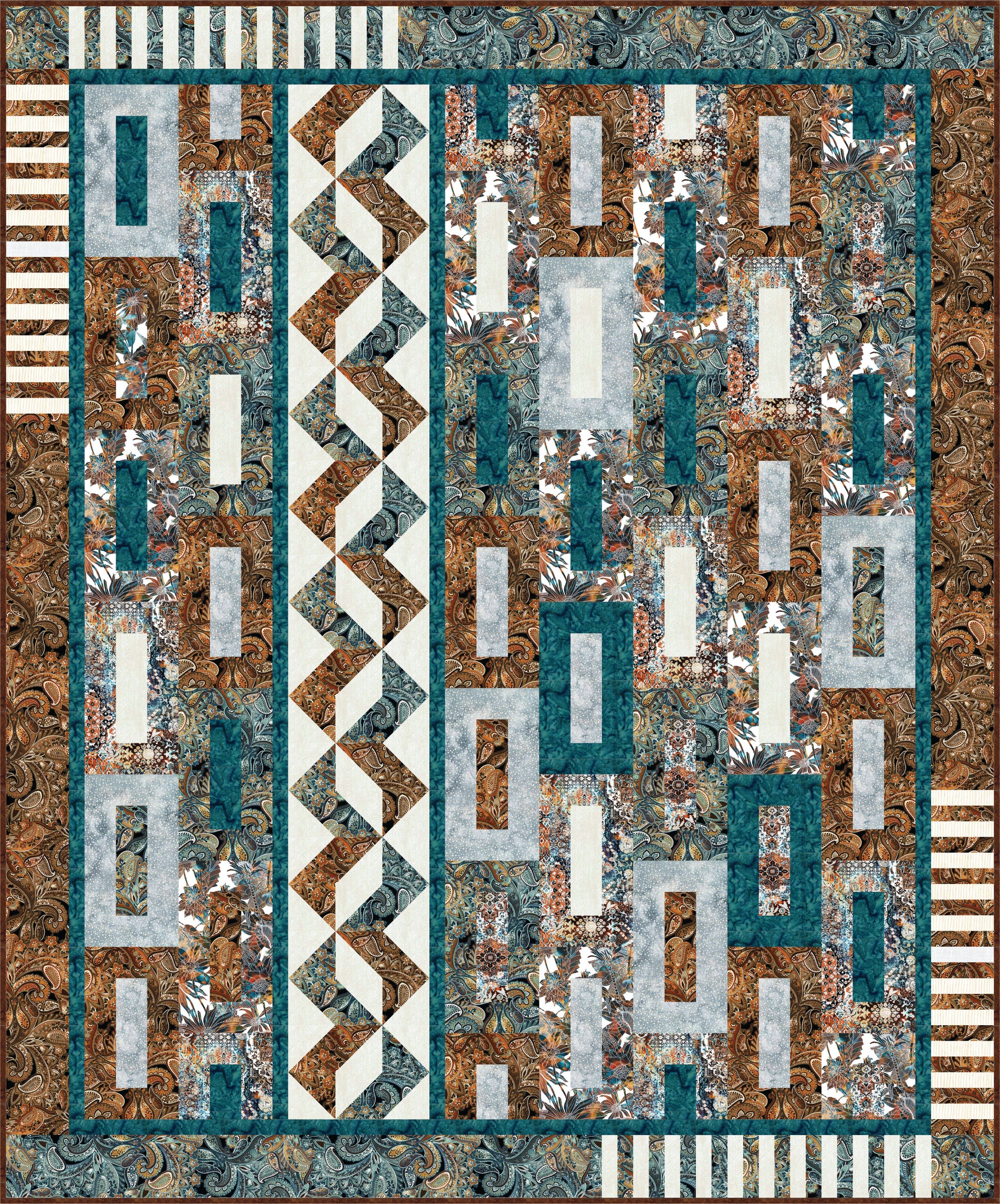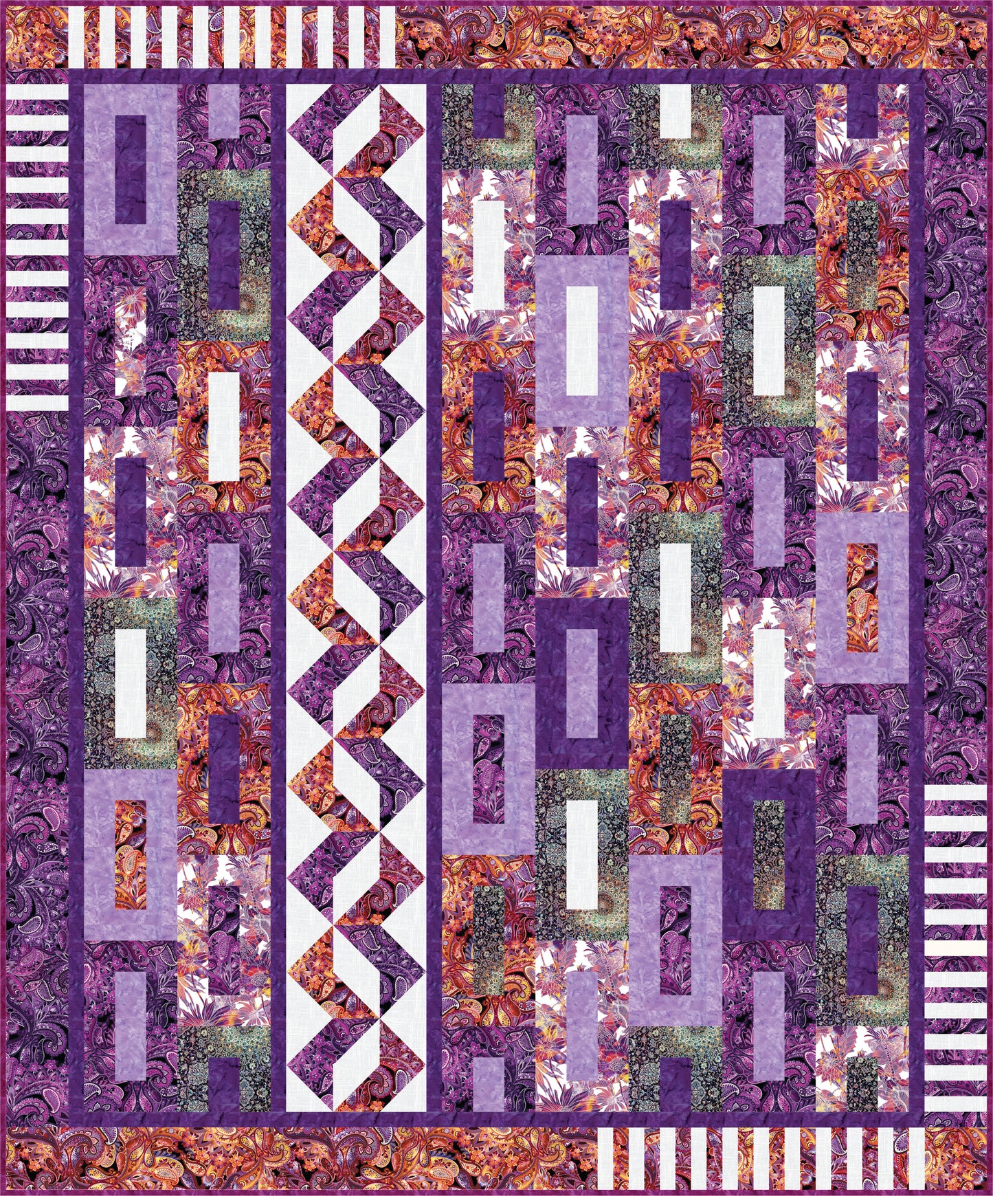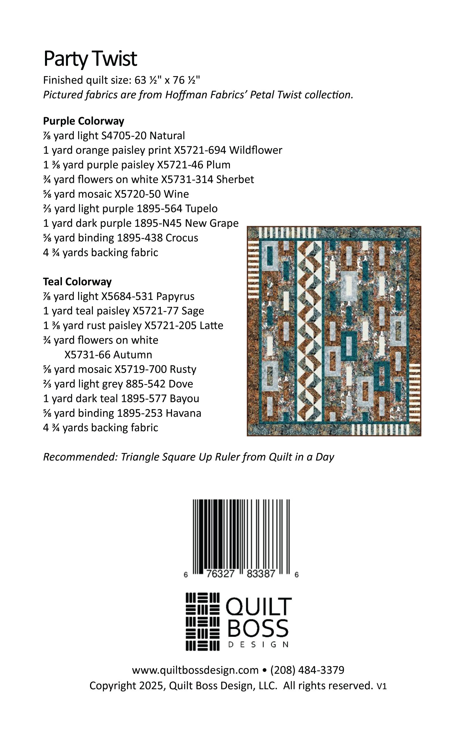 Bring a playful twist to a vibrant mix of colors with this cheerful quilt pattern! Easy-to-piece blocks create a lively design, while a clever border adds just the right touch of extra flair. The pattern includes two colorways, both featuring Hoffman Fabrics’ Petal Twist collection. Finished size: 63½" x 76½". A Triangle Square Up Ruler from Quilt in a Day is recommended.