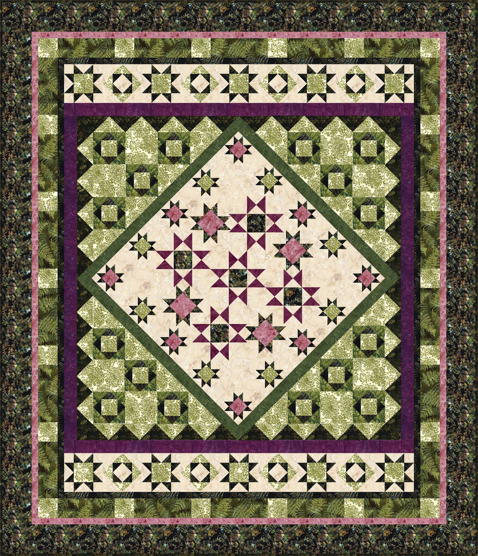 Celebrate timeless patchwork with this striking quilt design that brings together classic Sawtooth Stars, crisp Square-in-a-Square blocks, and a radiant medallion layout. The pattern adapts beautifully to any fabric style, includes both twin, 73 ½" x 85 ½", and queen, 85 ½" x 85 ½", sizes and can easily be adapted to a block of the month project. The twin and queen layouts maintain the same proportional design, simply expanding the borders for the queen size. Quilt in a Day's Small Flying Geese ruler is recommended but not required.