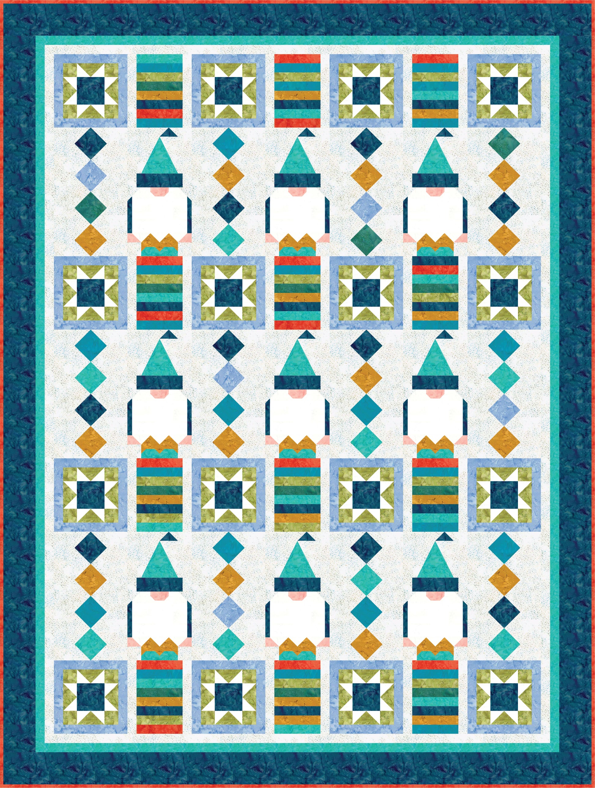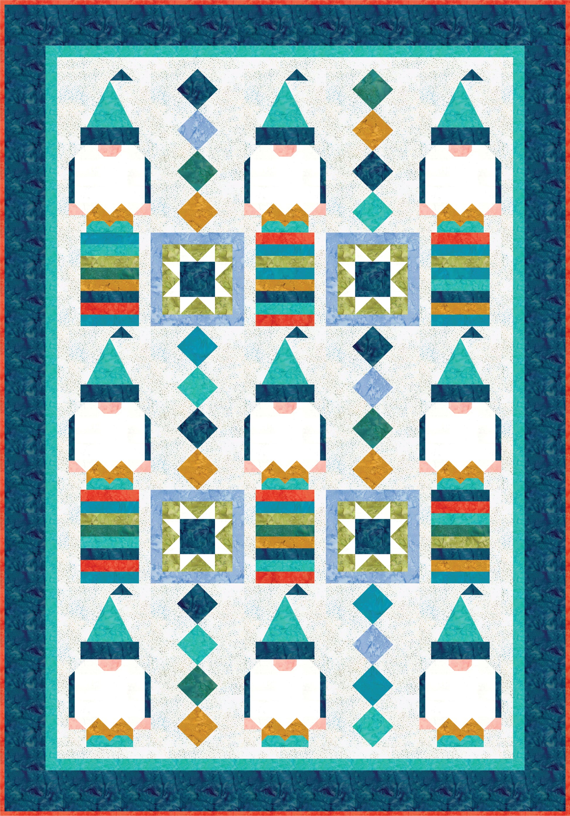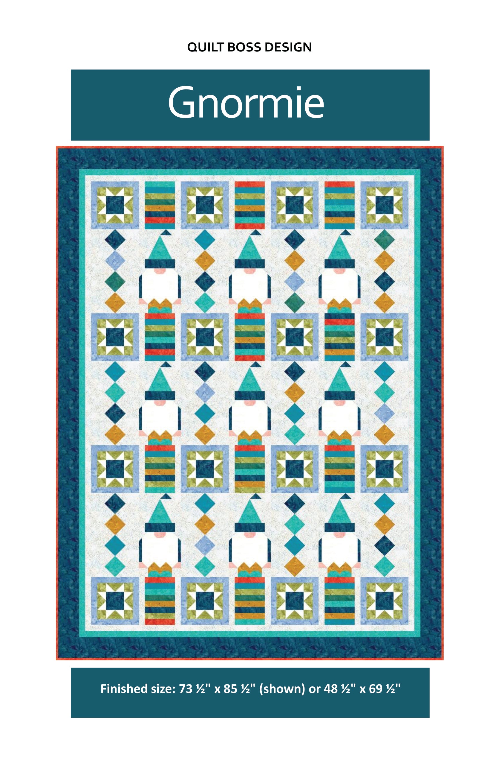 Meet Gnormie, a Gnome for any season. The modern design blends a playful gnome block with classic Sawtooth Star and Squares on Point blocks. This pattern is perfect for confident beginners and experienced quilters alike, and includes detailed step-by-step instructions and diagrams for two versatile sizes: